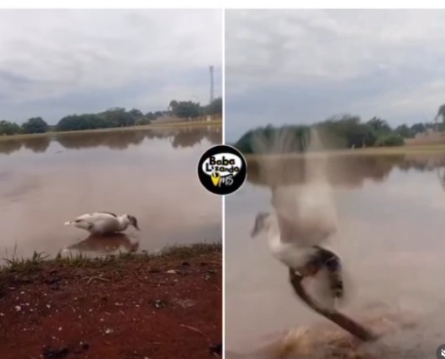 No reino animal, a lei da sobrevivência não é alterada pelas políticas públicas como acontece no mundo dos humanos. O nosso personagem aqui, o pato, coitado, distraído com a alimentação fácil, não percebeu a presença da sucuri de mais de cinco metros e acabou atacado de forma repentina.