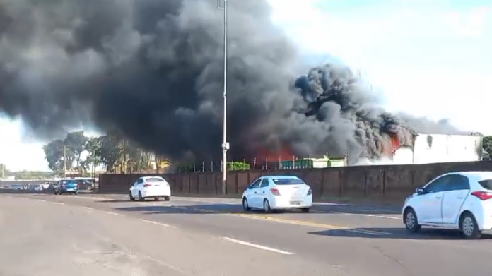 Um incêndio atinge depósito de materiais recicláveis, na tarde deste domingo (12), às margens da BR-163, entre as saídas de Três Lagoas e São Paulo, em Campo Grande.