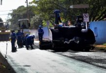 Quando o nível da água abaixou, foi possível ver também o estrago deixado pelo novo temporal. O asfalto na rotatória não suportou a pressão e rachou por inteiro, tendo algumas partes arrastadas. As equipes da Prefeitura já estão trabalhando no local, que deverá ser interditado por conta dos estragos.