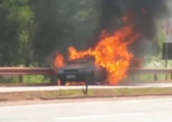 Agora, no começo da tarde, atearam fogo em pneus para bloquear a rodovia e acabaram por atingir com o fogo um Fiat Uno que passava pelo local. Assim, a ação provocou um grave acidente no veículo que passava pela rodovia bem na hora. O carro foi incendiado e deu tempo do motorista parar no acostamento e ver o veículo ser destruído pelas chamas.