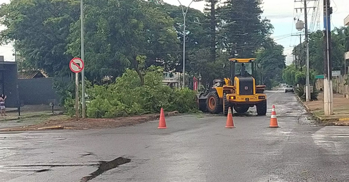 O temporal estava previsto e veio acompanhado de fortes rajadas de ventos que derrubaram galhos e até árvores inteiras em diferentes pontos da cidade. No centro, uma rua chegou a ficar interditada devido ao resto de uma árvore que caiu na pista. Caminhões caçamba e tratores estão sendo mobilizados para o serviço de limpeza das vias.