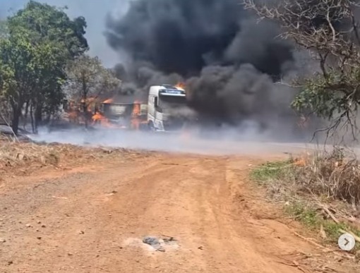 O Corpo de Bombeiros também foi acionado e controlou as chamas. Nas imagens compartilhadas nas redes sociais, é possível ver que o fogo destruiu os reboques.