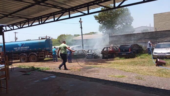 A ocorrência foi registrada nessa quinta-feira (1º). Ao todo, quatro veículos foram consumidos pelas chamas, sendo que todos esses estavam em situação de sucata, sendo produtos de apreensões.