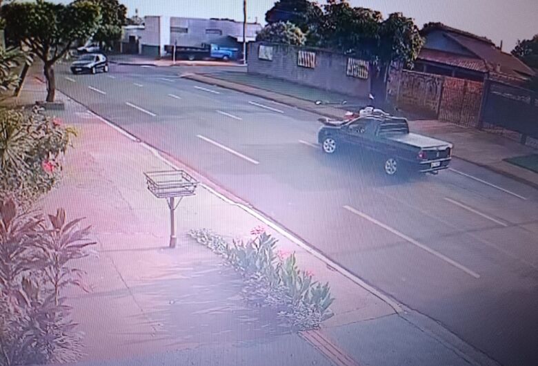 Imagens de câmeras de videomonitoramento registraram a dinâmica do acidente que matou uma motociclista de 62 anos, em Dourados, no sábado (05).