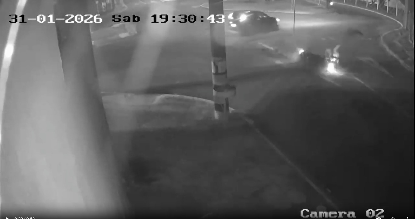 Imagens de uma câmera de videomonitoramento registraram o momento em que um motociclista, de idade não confirmada, é atingido por um veículo Hyundai i30 na rotatória da Avenida Manoel da Costa, em frente a Universidade Federal de Mato Grosso do Sul (UFMS), em Campo Grande.