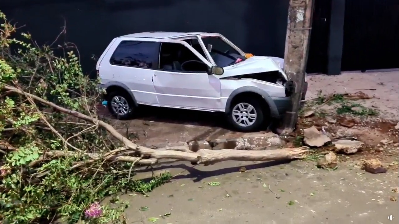 O motorista seguia em um veículo, modelo Fiat Uno, quando perdeu o controle da direção e acabou batendo contra uma árvore e depois contra um poste de energia elétrica, que por muito pouco não foi derrubado pela força do impacto.
