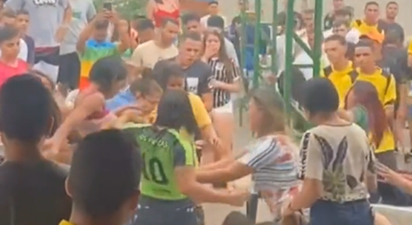 A briga logo se tornou generalizada e o jogo precisou ser encerrado antes do previsto. O tumulto começou quando algumas mulheres passaram a se xingar, até que entraram em luta corporal.