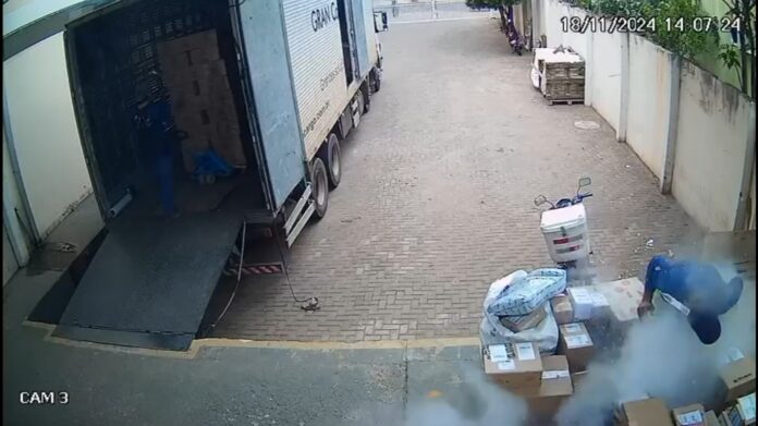 Segundo informações, a vítima estava separando as encomendas quando pegou uma das caixas e, após balançar, houve o estouro e um pó branco/cinza se espalhou.