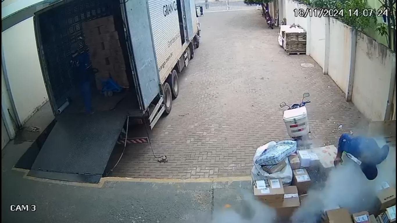 Segundo informações, a vítima estava separando as encomendas quando pegou uma das caixas e, após balançar, houve o estouro e um pó branco/cinza se espalhou.