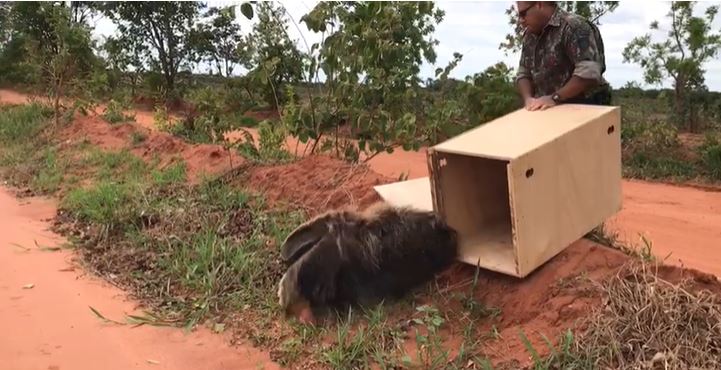 A PMA foi ao local e realizou a captura com uso de um cambão e colocou o tamanduá em uma caixa de contenção.