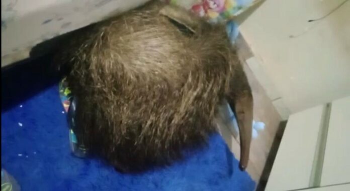 Um tamanduá-bandeira foi capturado na manhã desta quinta-feira, em uma residência no bairro Monte Castelo, em Campo Grande, por uma equipe da Polícia Militar Ambiental.