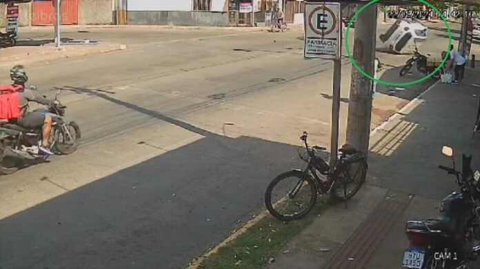 O desrespeito ao sinal vermelho provocou um capotamento na tarde desta quinta-feira (22), em Campo Grande. A dinâmica foi registrada por câmeras de videomonitoramento.