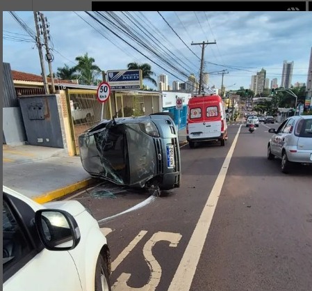 Vídeo: veículo capota ao ser atingido por outro em cruzamento da Rua Rui Barbosa
