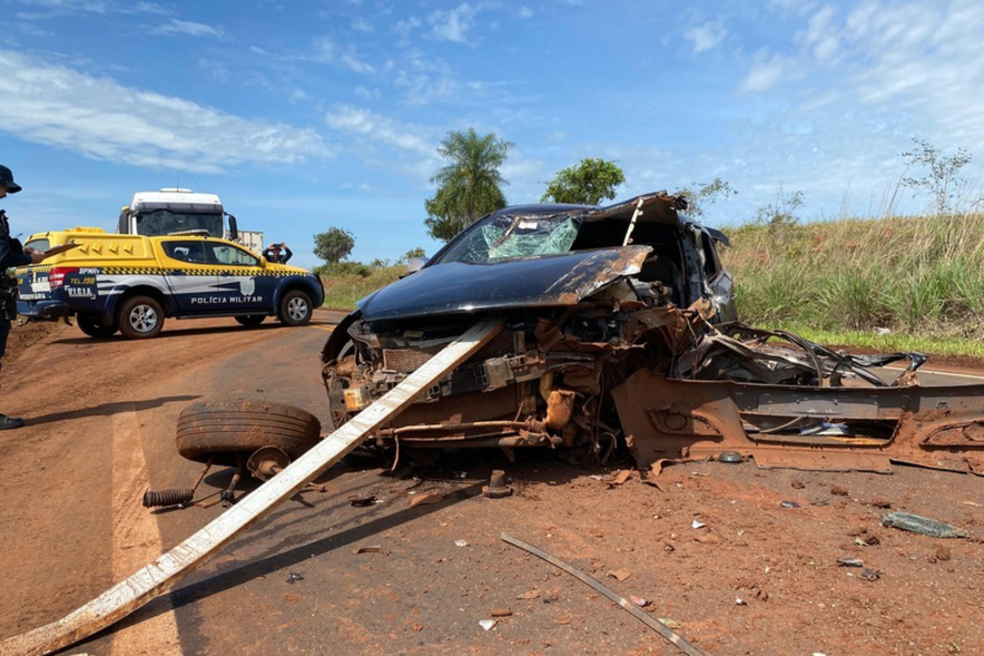 Um veículo ficou completamente destruído na manhã desse sábado (04) na rodovia estadual MS-162, no trecho entre Sidrolândia e Maracaju.