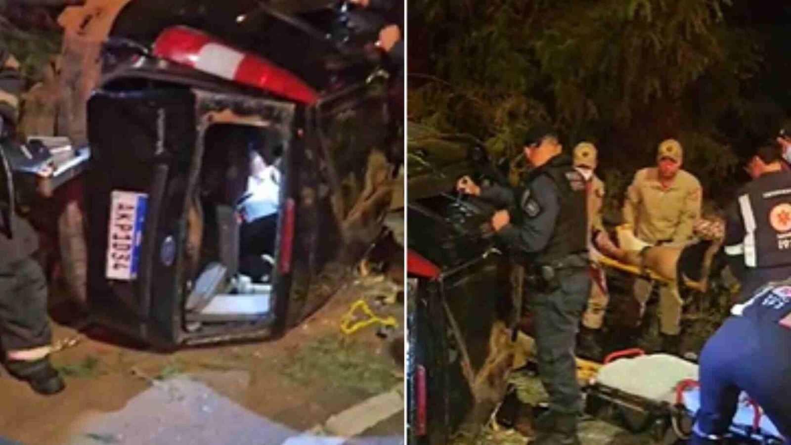 Os bombeiros fizeram o uso de desencarcerador para retirar as vítimas, que ficaram presas às ferragens. O veículo ficou completamente destruído e só não caiu dentro do córrego porque bateu nas árvores, às margens.