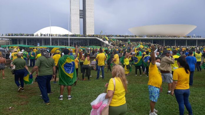 Os golpistas, que temos que lembrar que são Bolsonaristas radicais, invadiram o Congresso Nacional, neste domingo, após entrar em confronto com a Polícia Militar na Esplanada dos Ministérios, em Brasília, Os participantes, que se dizem pacíficos e da “tradicional família brasileira” e patriotas, mas de atos antidemocráticos, estavam com pedaços de paus e pedras.