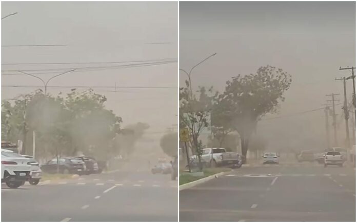 Pelas redes sociais, vários vídeos mostram a rajada arrastando galhos de árvores, placas publicitárias, cadeiras de comércios e levantando muita poeira. A população foi surpreendida pela mudança no tempo, já que fez muito calor pela manhã.