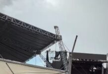 O cantor Max Henrique, que faria o show no stand da emissora de rádio FM Cidade, divulgou imagens de como ficou a estrutura do local após a passagem do temporal, que durou pouco menos de 1 hora.