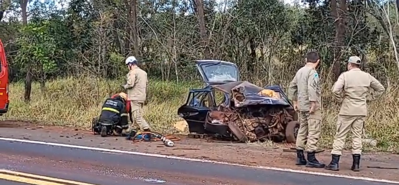 Devido a força do impacto, o automóvel ficou completamente destruído e foi arremessado para as margens da rodovia. As vítimas ficaram presas às ferragens e o Corpo de Bombeiros fez o uso do desencarcerador para retirá-los dos destroços.