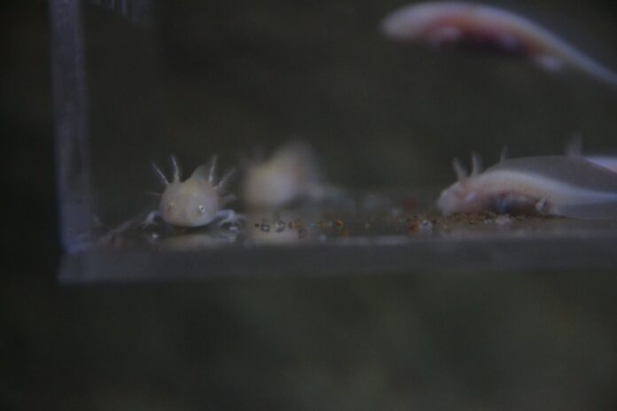 De origem mexicana, a espécie de Salamandra nunca sai do estado larval e não se tornam animais terrestres, passando a vida na água doce.