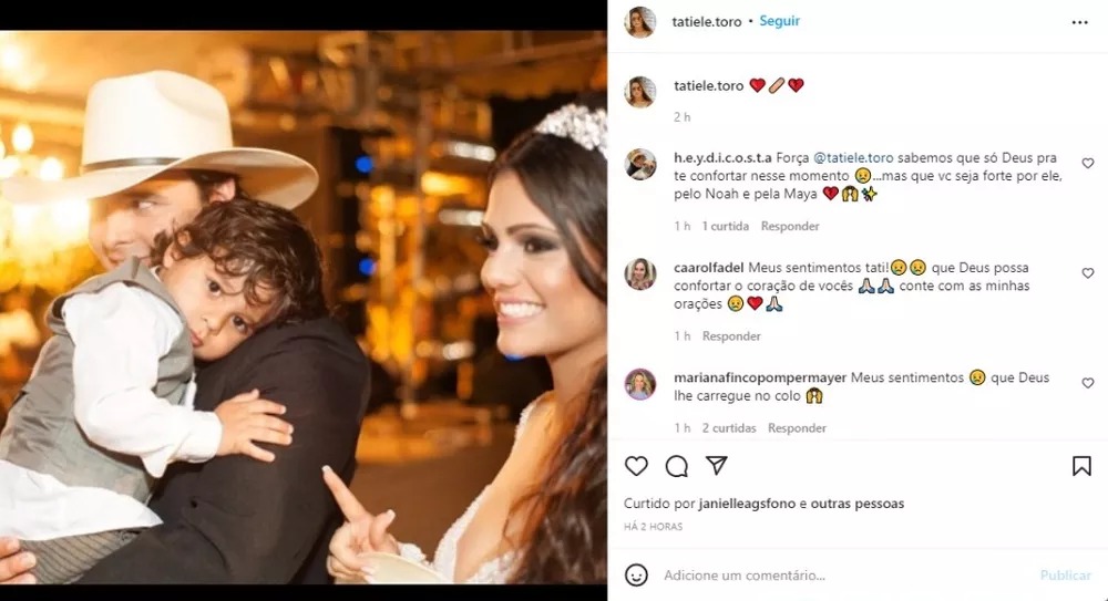 “Força tatiele.toro sabemos que só Deus pra te confortar nesse momento 😢…mas que vc seja forte por ele, pelo Noah e pela Maya 💔🙌✨️”, comentou uma fã nas redes sociais.