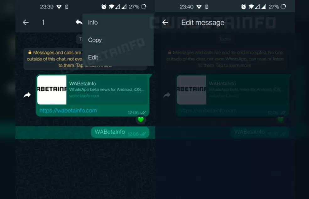 De acordo com o site WABetaInfo, o botão para editar mensagens permite mudar o conteúdo que já foi enviado para corrigir erros de digitação, por exemplo.