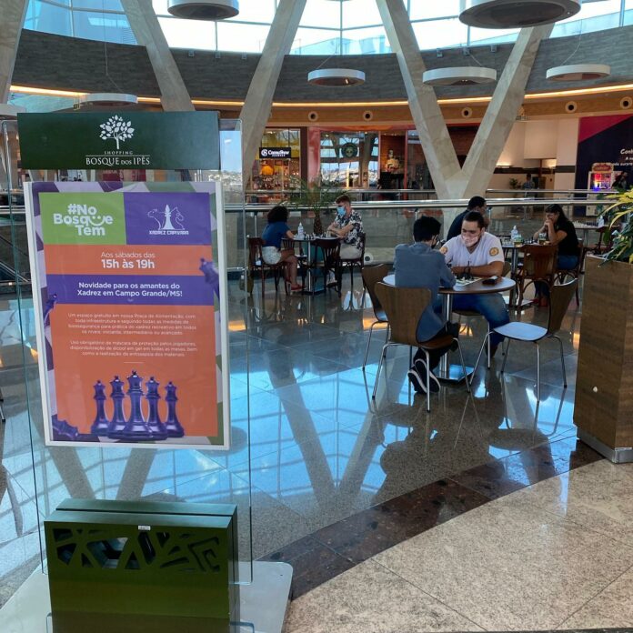 Os apaixonados por Xadrez agora têm um novo espaço de encontro em Campo Grande. Com a parceria do Clube de Xadrez Capivara, o Shopping Bosque dos Ipês disponibiliza aos enxadristas amadores e profissionais uma área reservada de sua Praça de Alimentação para a prática desta atividade que é considerada não apenas um esporte, como também uma ciência e uma arte, e que trabalha habilidades como a lógica, a estratégia e a tática.