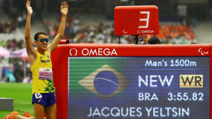 O campo-grandense Yeltsin Jacques, de 34 anos, conquistou oficialmente seu lugar no Guinness World Records 2026 ao registrar o tempo de 3min55s82 nos 1.500 metros da classe T11, prova de atletismo para atletas com deficiência visual total. A marca foi alcançada nos Jogos Paralímpicos de Paris 2024, superando seu próprio recorde anterior de Tóquio 2020, e coloca o paratleta sul-mato-grossense entre os mais rápidos do mundo na categoria.